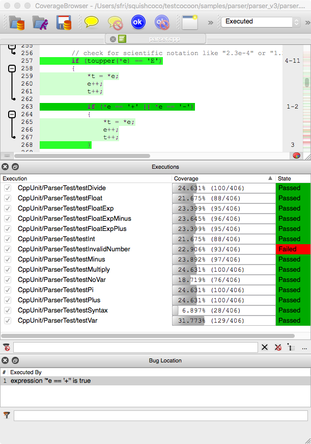 One way to use this information, is to compare a failed with a passed test. As explained in a previous post, the difference in the executed code can give a hint to the location of the bug. But on huge project with a lot of tests it is difficult to choose the pertinent tests and there is no guarantee that the failed test is executing more code as the passed tests.