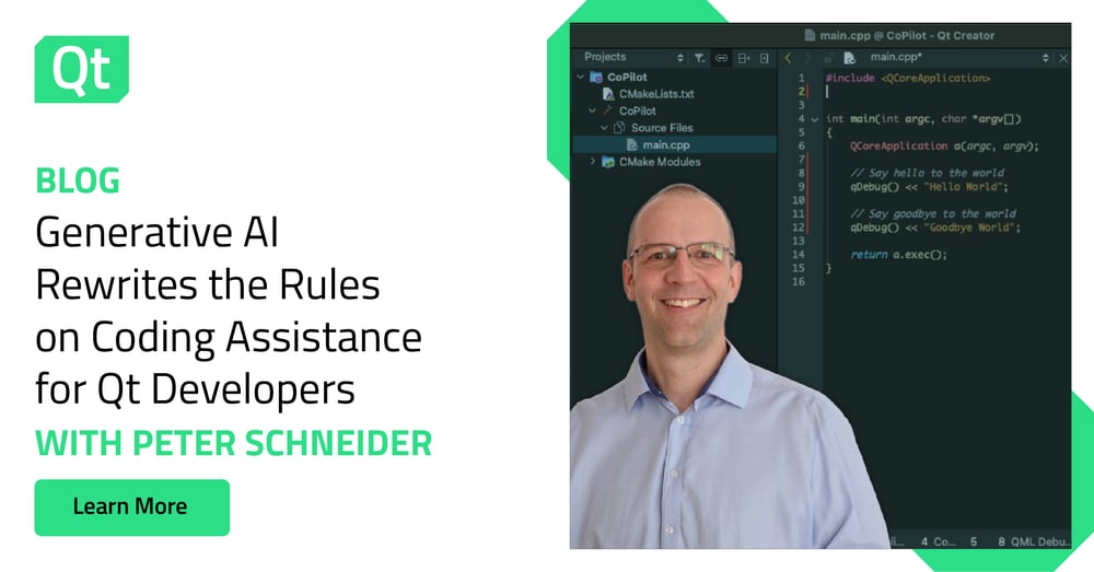 The Qt Creator IDE has a ready plug-in to the GitHub Copilot supporting a variety of coding assistant use cases. If you want to know more about using GitHub Copilot with the Qt Creator, check for more information here.