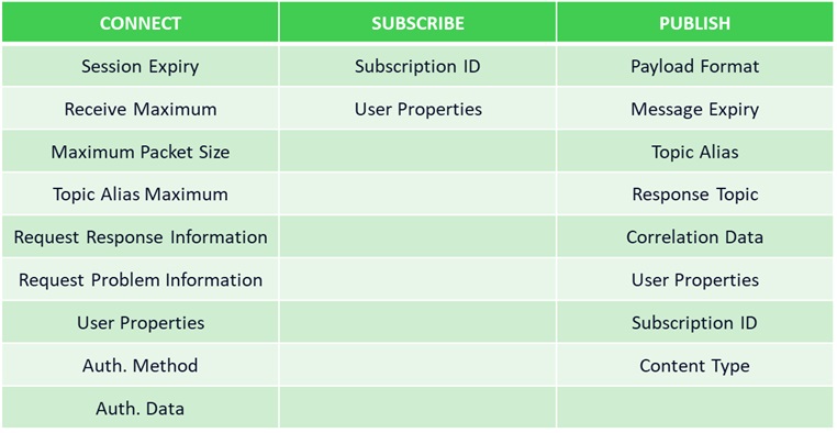 您可能已经从上文中了解了发布过程中的属性类的用法。这体现了MQTT 5引入的新的概念。在保持协议精简、易用的同时,我们还花了不少精力去创建更灵活的结构。