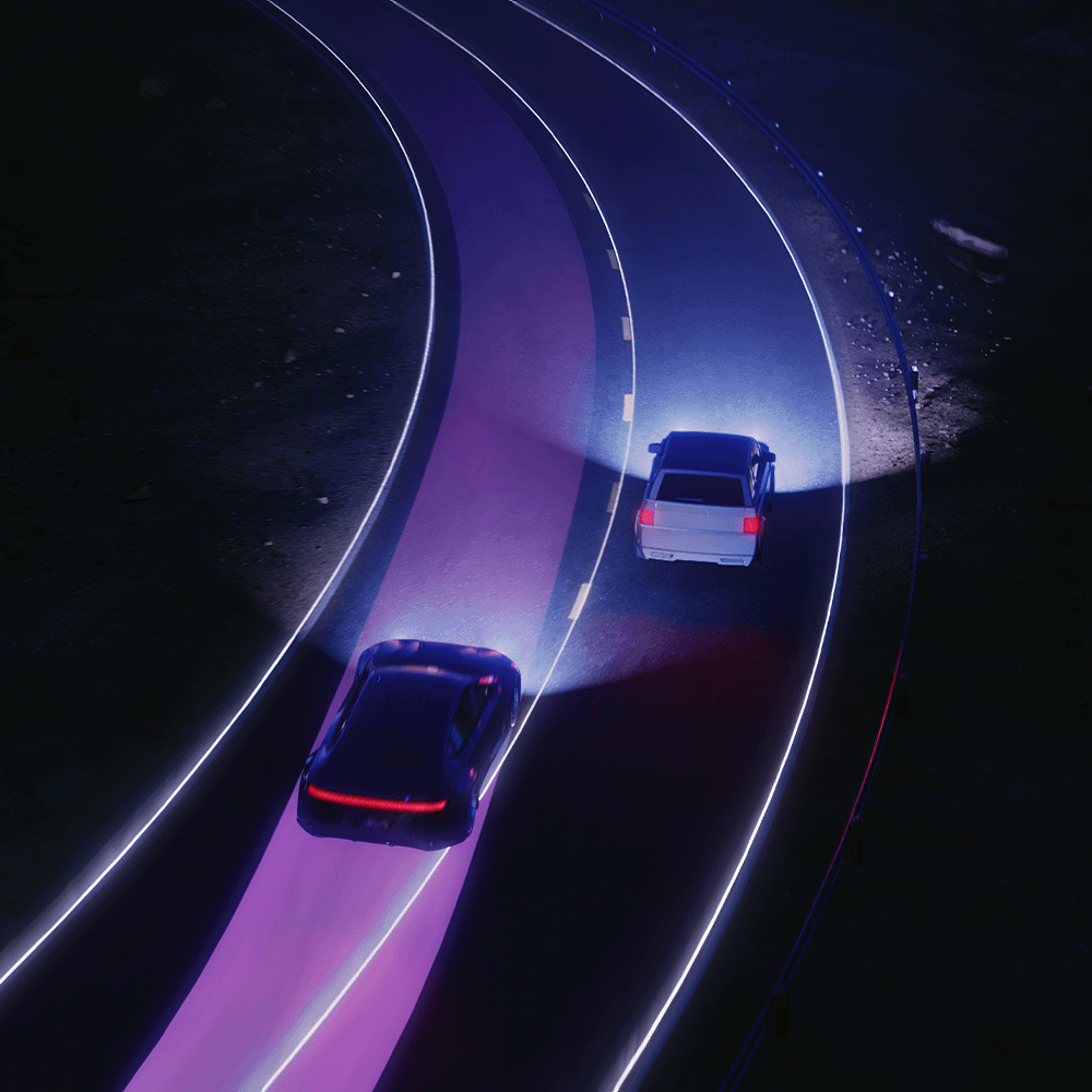 研究该主题后,我们决定引入外部环境的电影式实时可视化,借助实时3D图形创造独特的驾驶氛围,从电子游戏的沉浸式体验中汲取灵感。甚至连演示名字和视觉风格都是致敬世嘉经典游戏《OutRun》及其衍生的复古合成器浪潮美学。