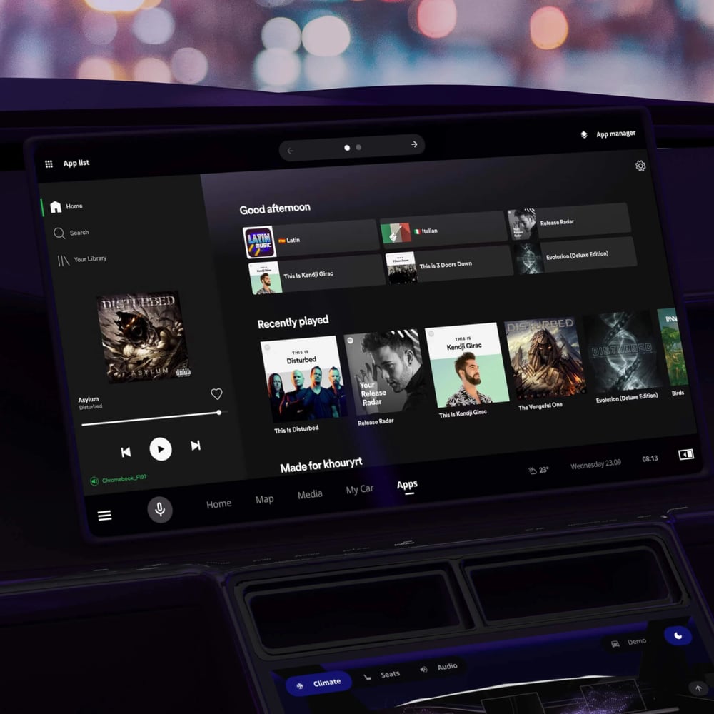 通过将Android Automotive集成到其车载信息娱乐系统(IVI)和车内空调系统(HVAC)中,Outrun现在展示了AAOS的完全定制功能,配备了高性能、先进的2D和3D图形,以及通过Qt框架实现的高级HMI功能。
